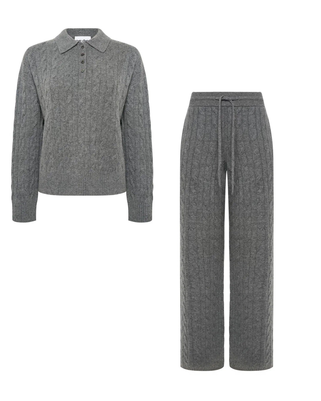 Джемпер и брюки из 40% кашемира и 60% шерсть мериноса - он связан косами из тонкой и легкой нити, мягко обволакивает и согревает.