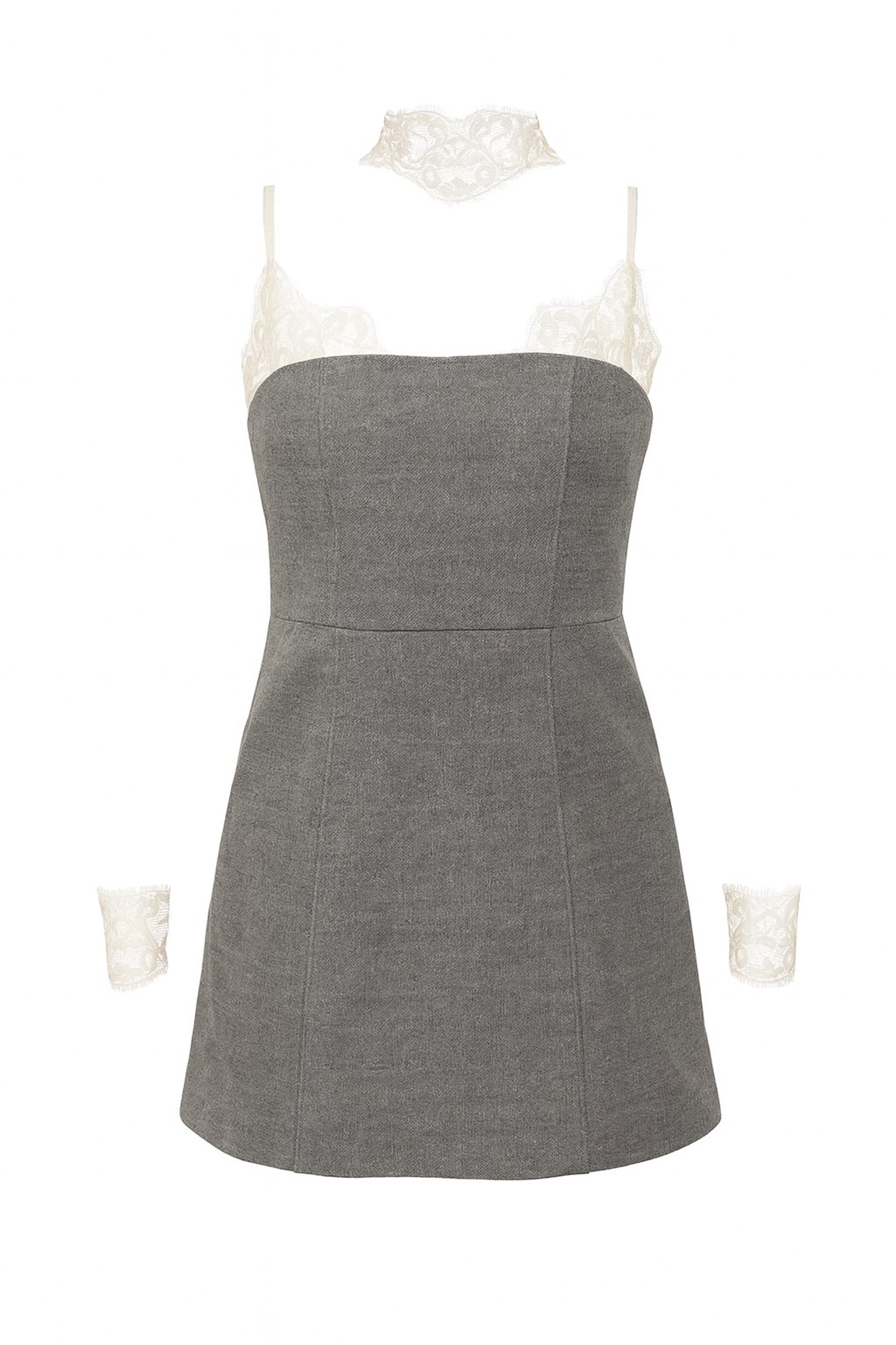 Платье SNOW в длине мини с кружевными манжетами и чокером
